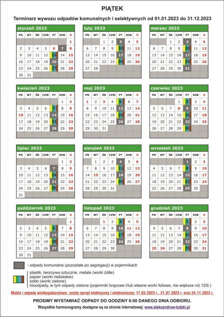 Zestawienie zawiera harmonogram wywozu śmieci z Brużyczki Małej. Można go obejrzeć klikając na grafikę lub pobrać